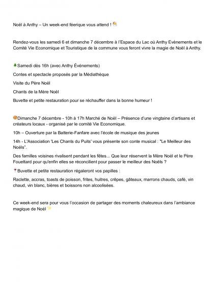 Le marché de Noël aura lieu à l'Espace du Lac à Anthy-sur-Léman samedi 6 décembre dès 16 heuures et toute la journée du dimanche 7 décembre de 10 h à 17 h.